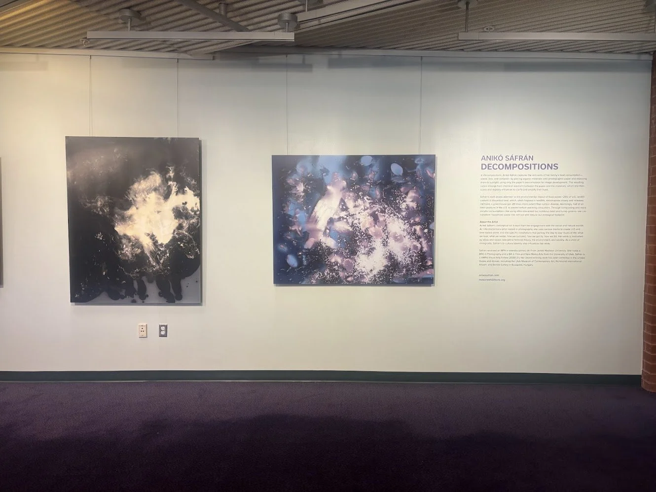 Sáfrán received an MFA in Interdisciplinary Art from James Madison University. She holds a BFA in Photography and a BA in Film and New Media Arts from the University of Utah. Sáfrán is a VMFA Visual Arts Fellow (2020-21.) Her award-winning work has been exhibited in the United States and abroad, including the Utah Museum of Contemporary Art, Richmond International Airport, and Bartok Gallery in Budapest, Hungary.