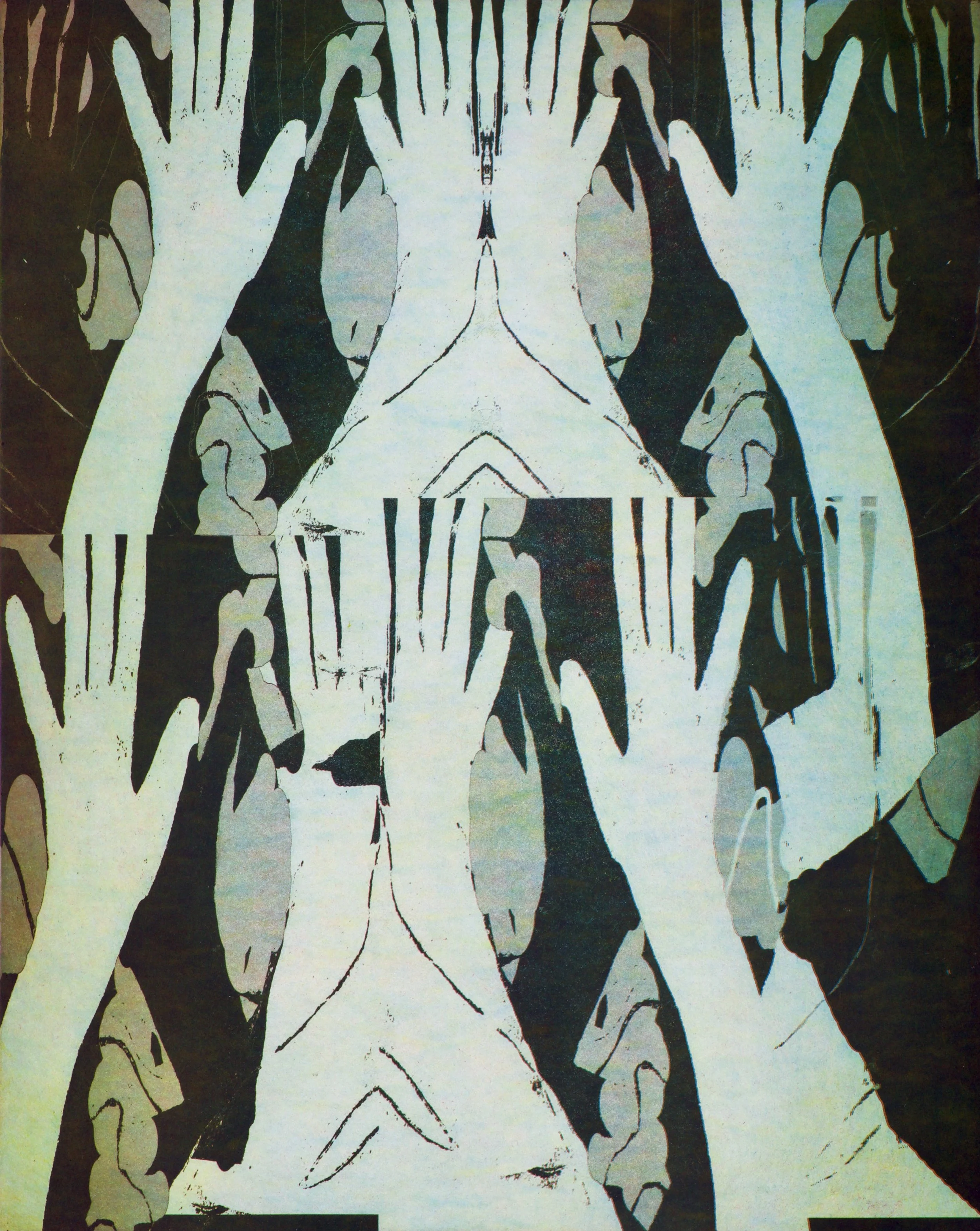 Lithography utilizes the resistance between oil and water. A greasy crayon is used to draw a design on a slab of stone or steel and is then chemically treated. Water is applied which doesn’t adhere to the wax drawing and fills the negative space. Oily ink is then applied, which sticks to the grease drawing.