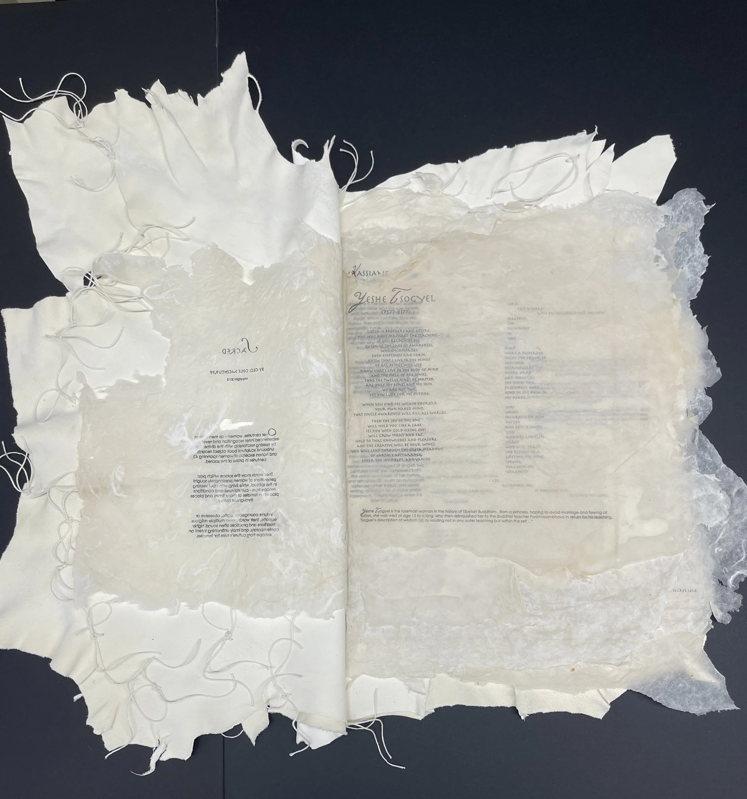 I am a sculptor, paper and book artist whose materials reference spiritual ecology - wisdoms within nature which humans can learn from to adapt or survive longer.