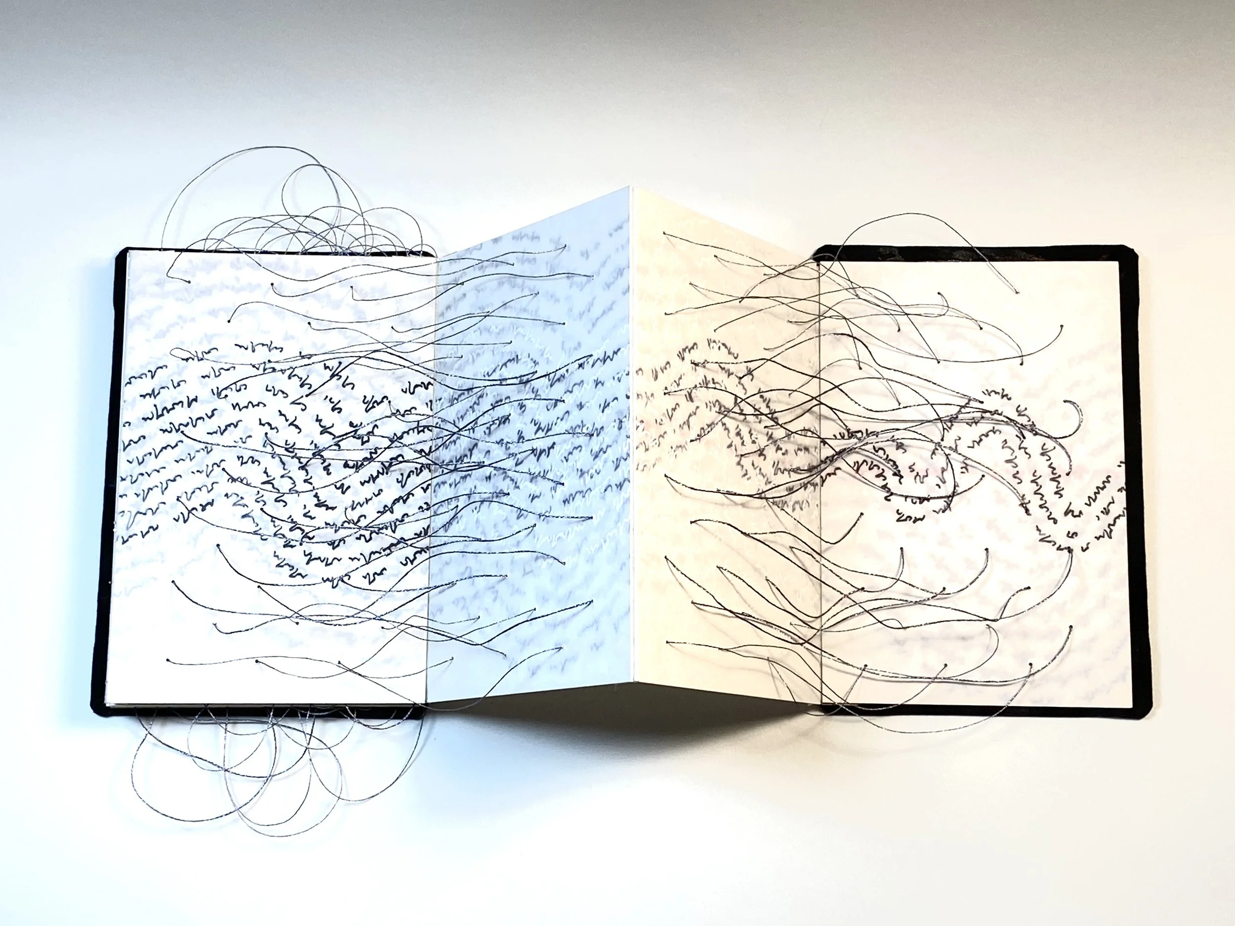 Kate Fitzpatrick grew up in a family of travelers, moving frequently and encountering many cultures and languages. Often feeling like an outsider, she became interested in how signs and symbols create systems of meaning. Working primarily with traditional media like pen and ink, she also incorporates materials such as thread, acetate, and fabric to produce intricate drawings, paintings, artist books, and installations that explore her own graphic language.