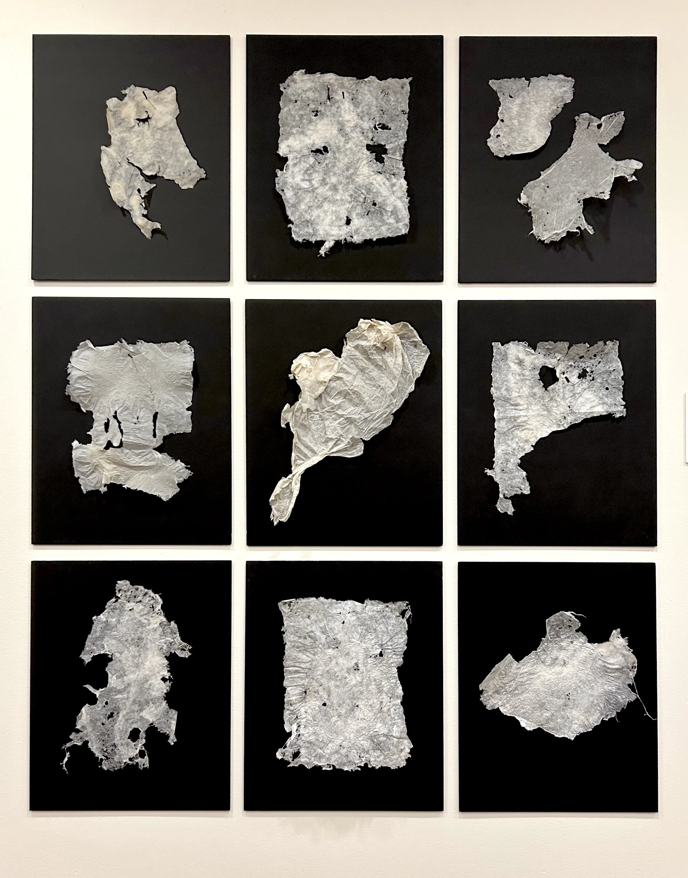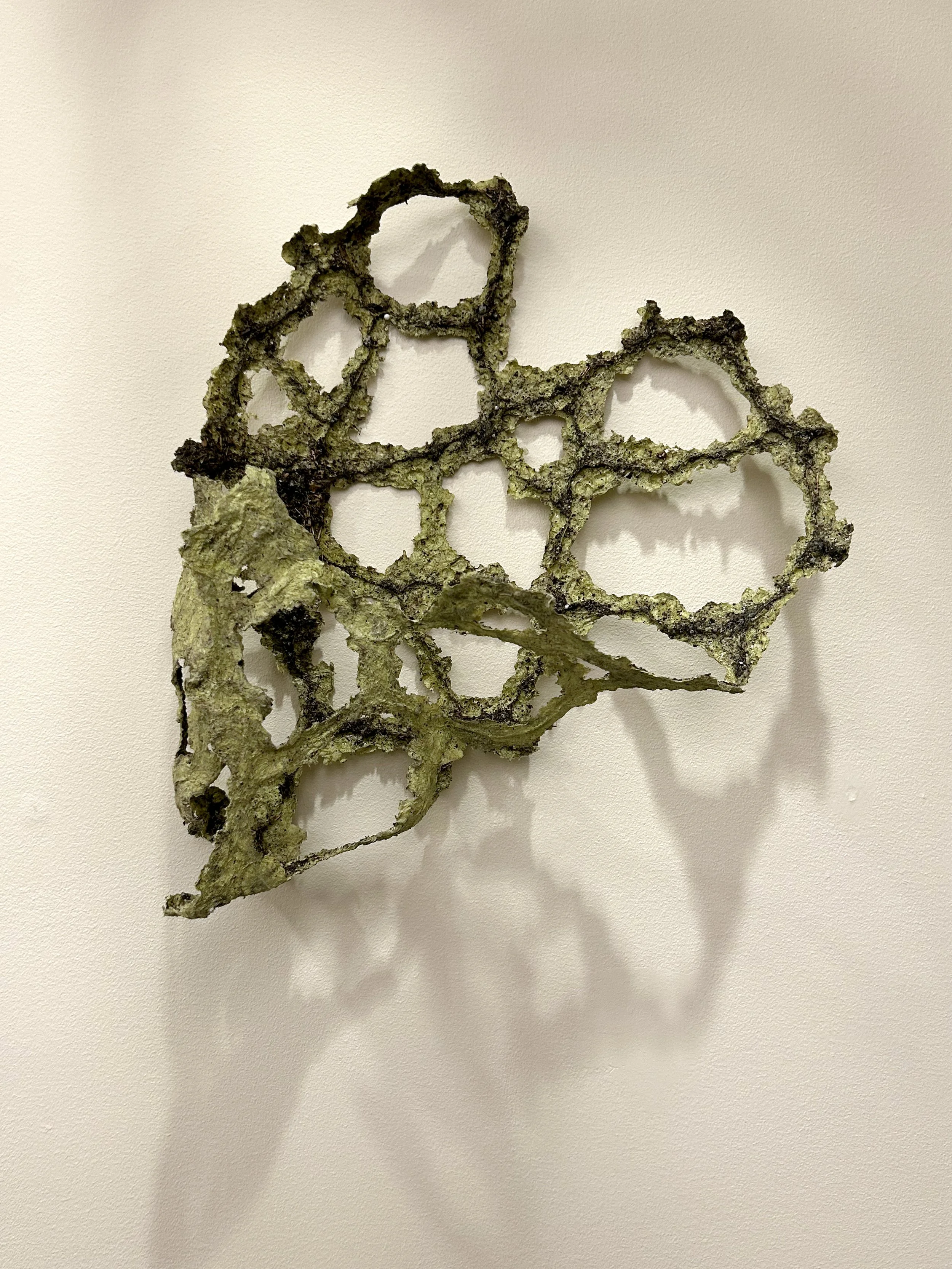 Born with the brittle bone condition Osteogenesis Imperfecta, I bring a deeply personal understanding of fracture and repair to my process. I use handformed abaca pulp deliberately: abaca paper is delicate yet surprisingly strong, like the human body. Embedding a copper wire as a skeleton allows the paper to lift from the site, keeping the shape of that fracture: a 1:1 map with dirt clinging to the fiber. It folds to become a vessel of only cracks, unfolds and casts shadows. I make Cyanotypes to record the shadows and render them in light—a further translation and transformation—developing drawings and mixed-media works by tracing additional shadow layers. These forms become metaphors for healing, icons of resilience and tenderness.