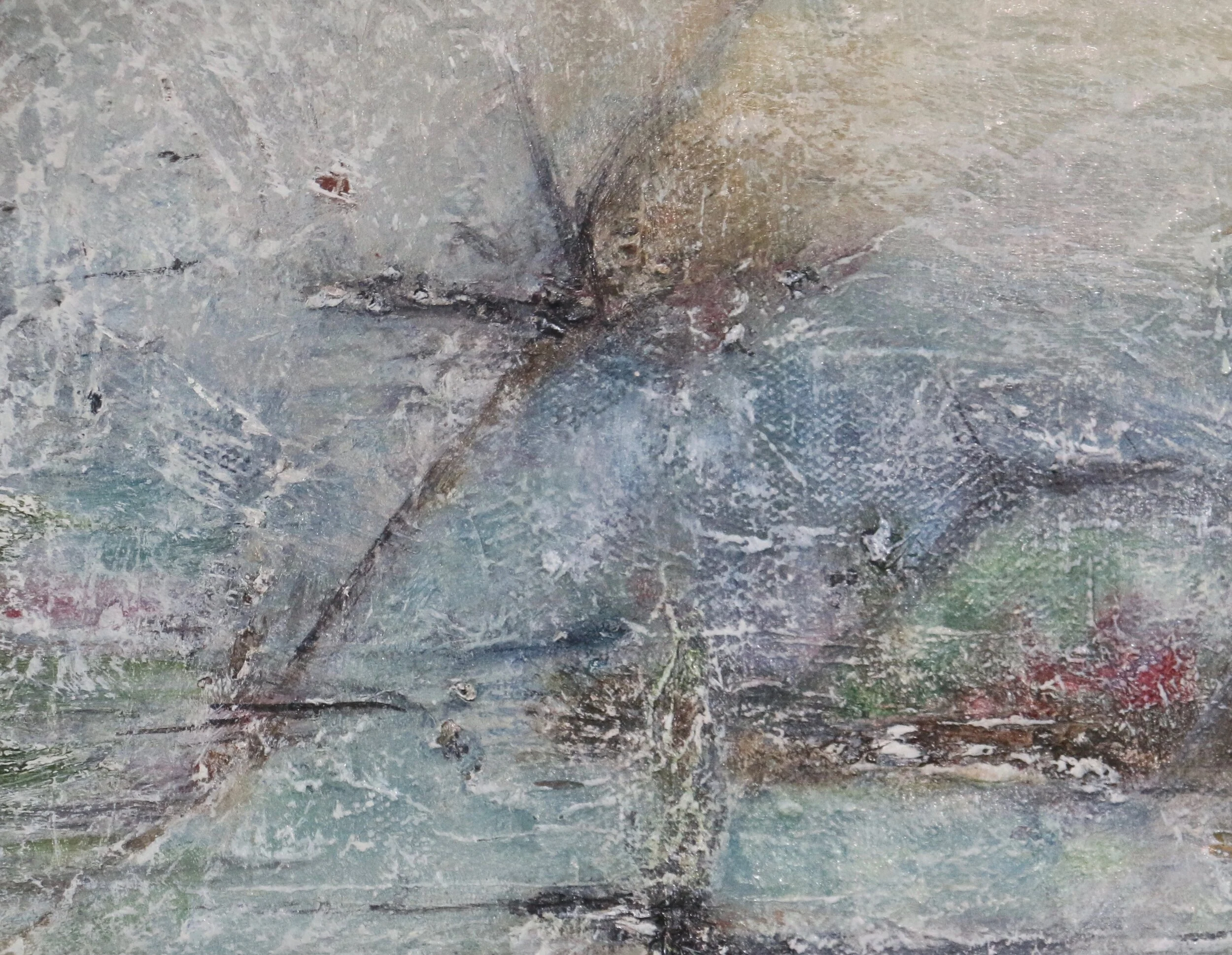 ARTIST STATEMENT: There is no script, no preparation of any sort before I paint. Staring blandly at a canvas, imagining the future painting, and waiting for my intuition to spark, this is the way how I start and process my work. I pour, drip, and sprinkle thin or thick oil pigments over the layers of canvas; I let brush dances around with its own rhythm and decency; I treat every inch of canvas equally. I let painting be free from any restrictions; I allow them to express their own emotion, as they are part of me, and part of me is in them; we keep debating back and forth - until -we both agree to dance Waltz together. For me, the process of the painting is also the process of innermost perception.