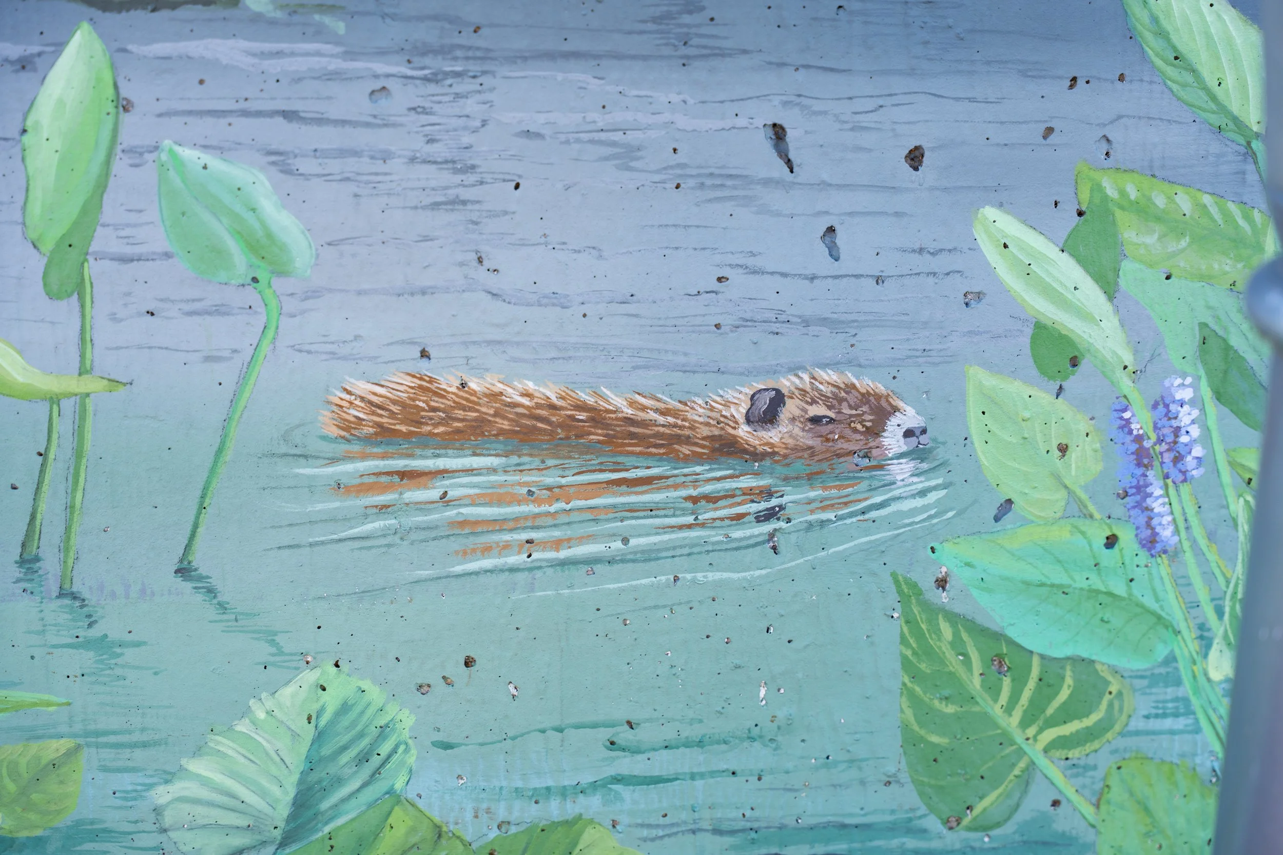 The mural depicts the life and impact of a river from source to sea. It demonstrates the ecosystems that form around flowing bodies of water, the inter-relationship between nature and humanity, and the multiplicity of life that rivers foster. This mural synthesizes art and science by visually illuminating the importance of scientific endeavors to the world.