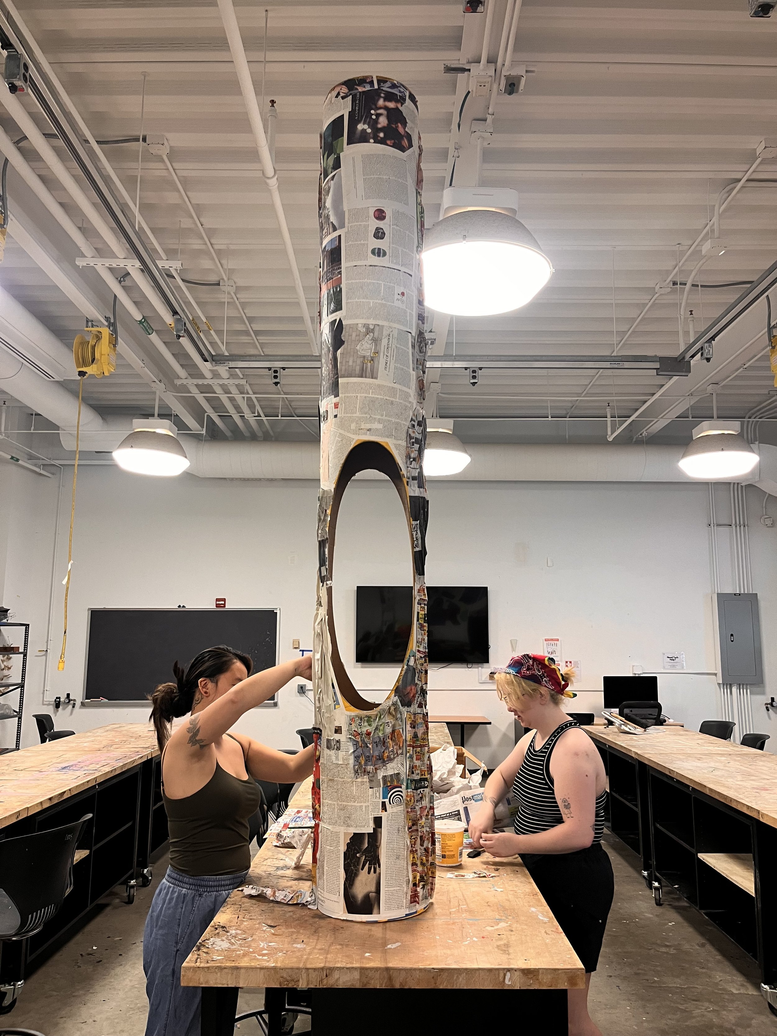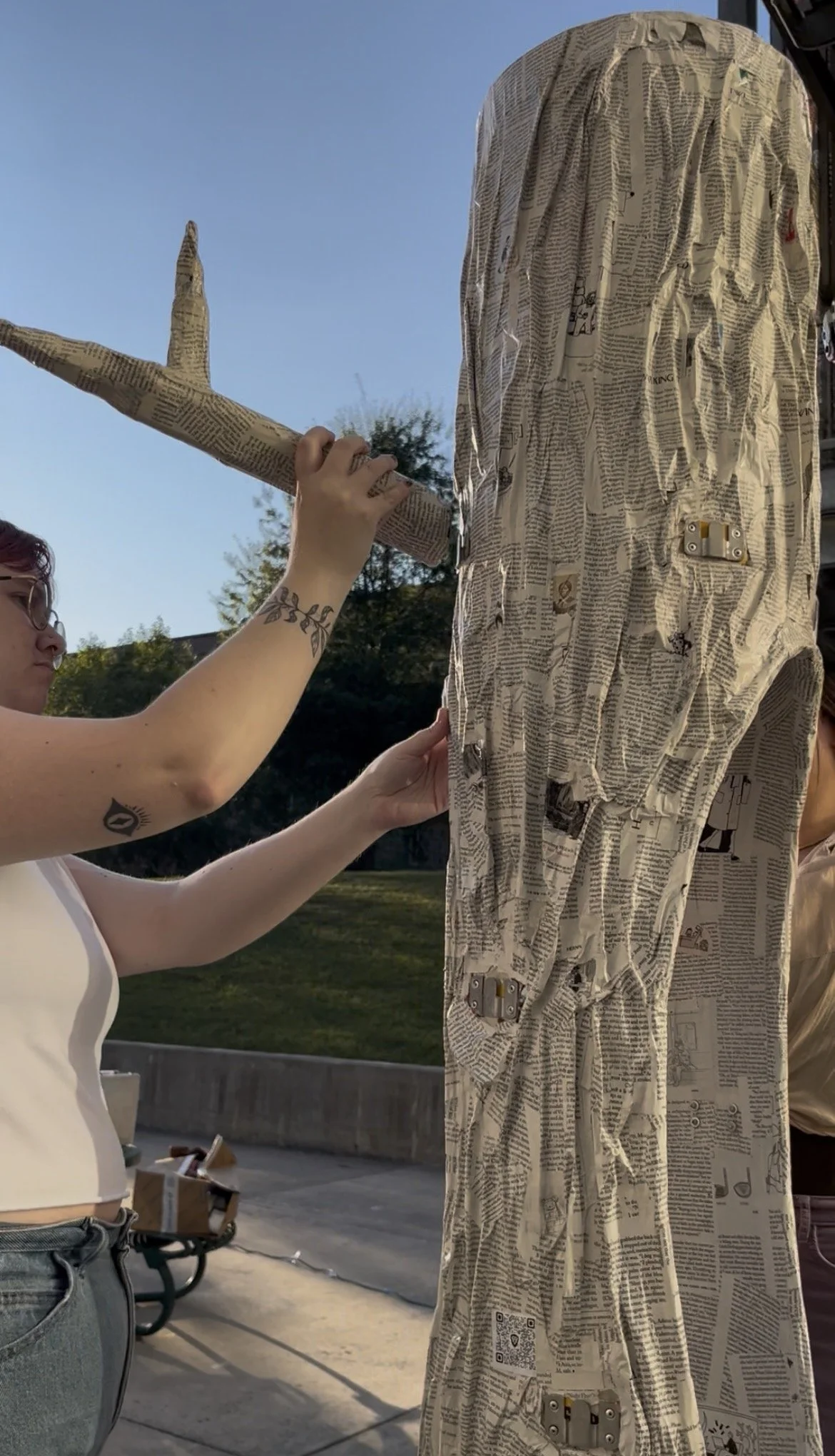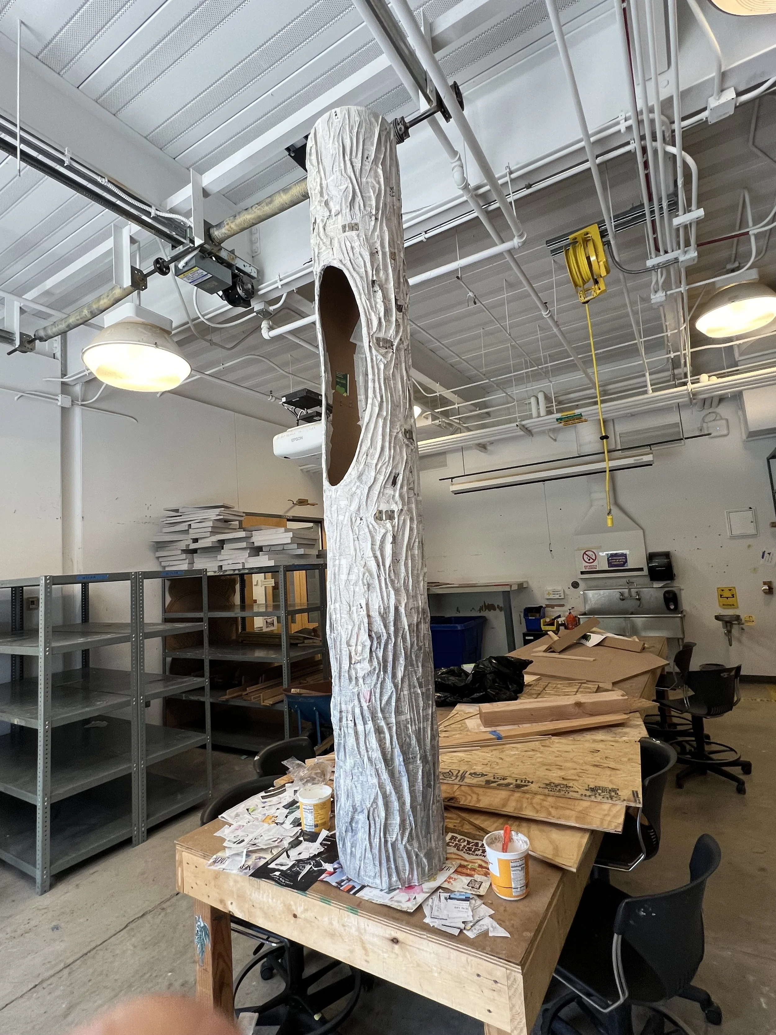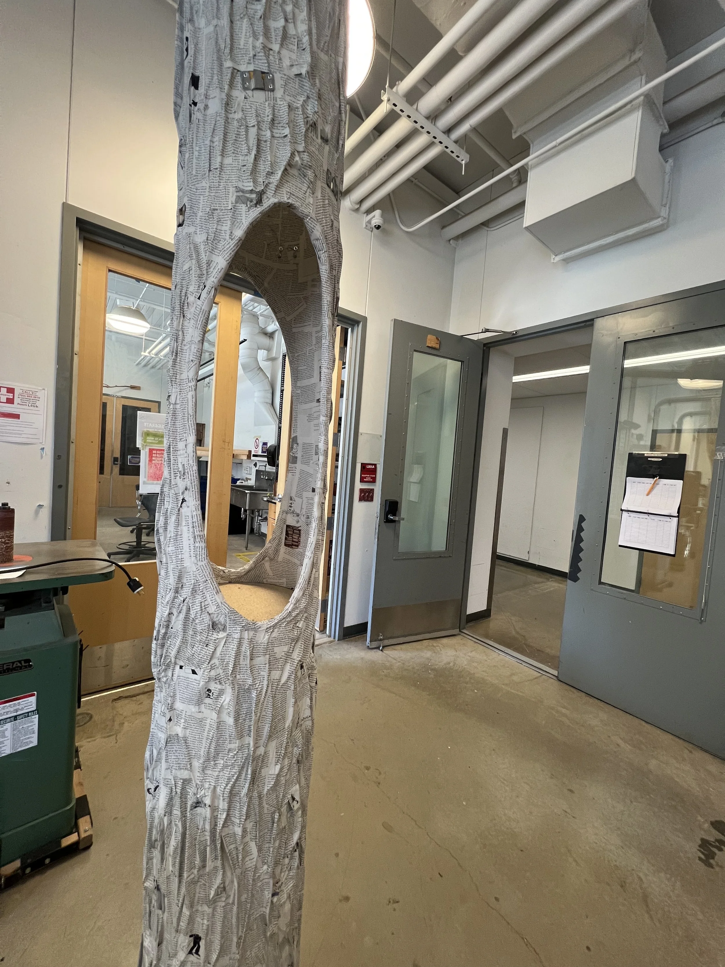 From start to finish, The Meridian Tree was an experimental process. Each week brought new challenges for Chloe and me. How do we make the branches stable? How many layers of paper mache are necessary? How do you construct the natural texture of tree bark on a smooth tube? We were a small team with a big project, and it forced us to expand our timeline beyond what either of us thought would be necessary. But the time also allowed us to slow down and connect without technological boundaries.