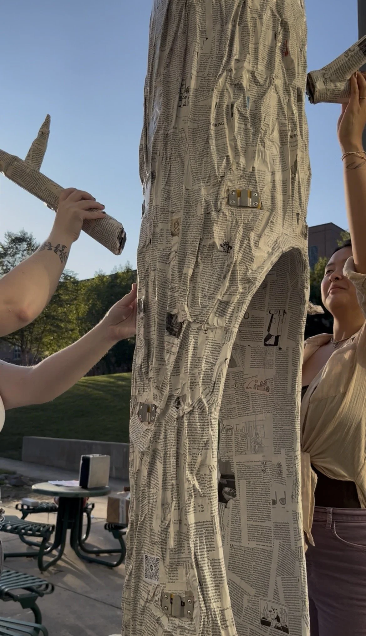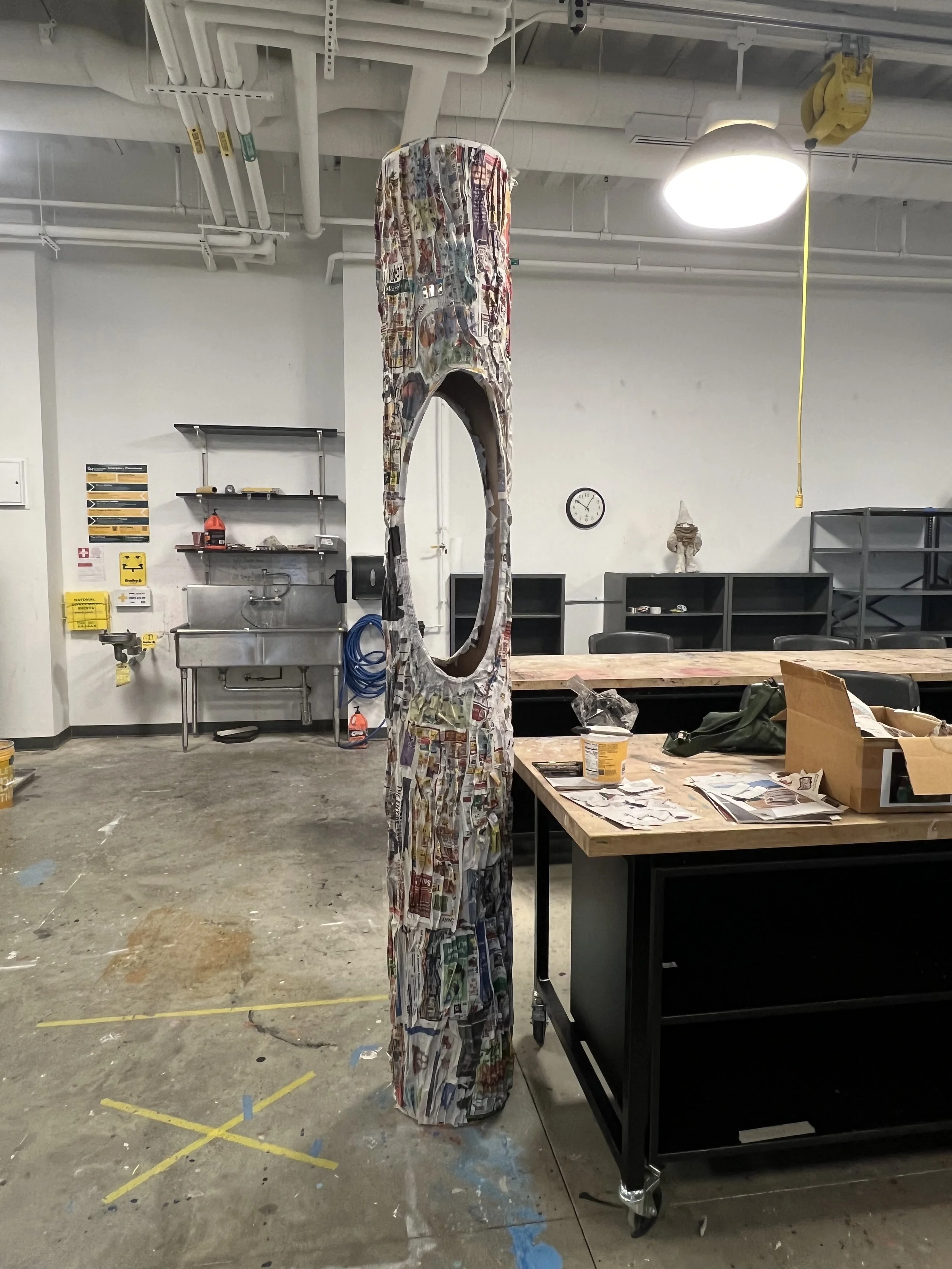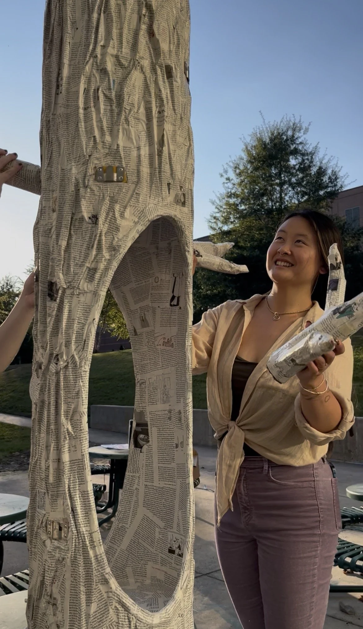 It was important that the medium we were using was very physical and hands-on. Although I have an arts background, paper mache and sculpture were not familiar mediums, so it was a fun challenge to work with. Each layer had to take time to dry, leaving us time to reflect on what worked and what didn’t, and try something new. Working with Chloe was also a surprisingly positive addition. We were strangers put together to work on a project neither of us was an expert in, but over those several months, we learned about the practice and each other.